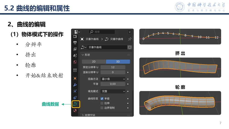 的“曲线数据”中查看,本章不再重复介绍。下次课会介绍曲线和网格之间的转换,还有一些附加知识,《线的可视化》内容就讲完了。