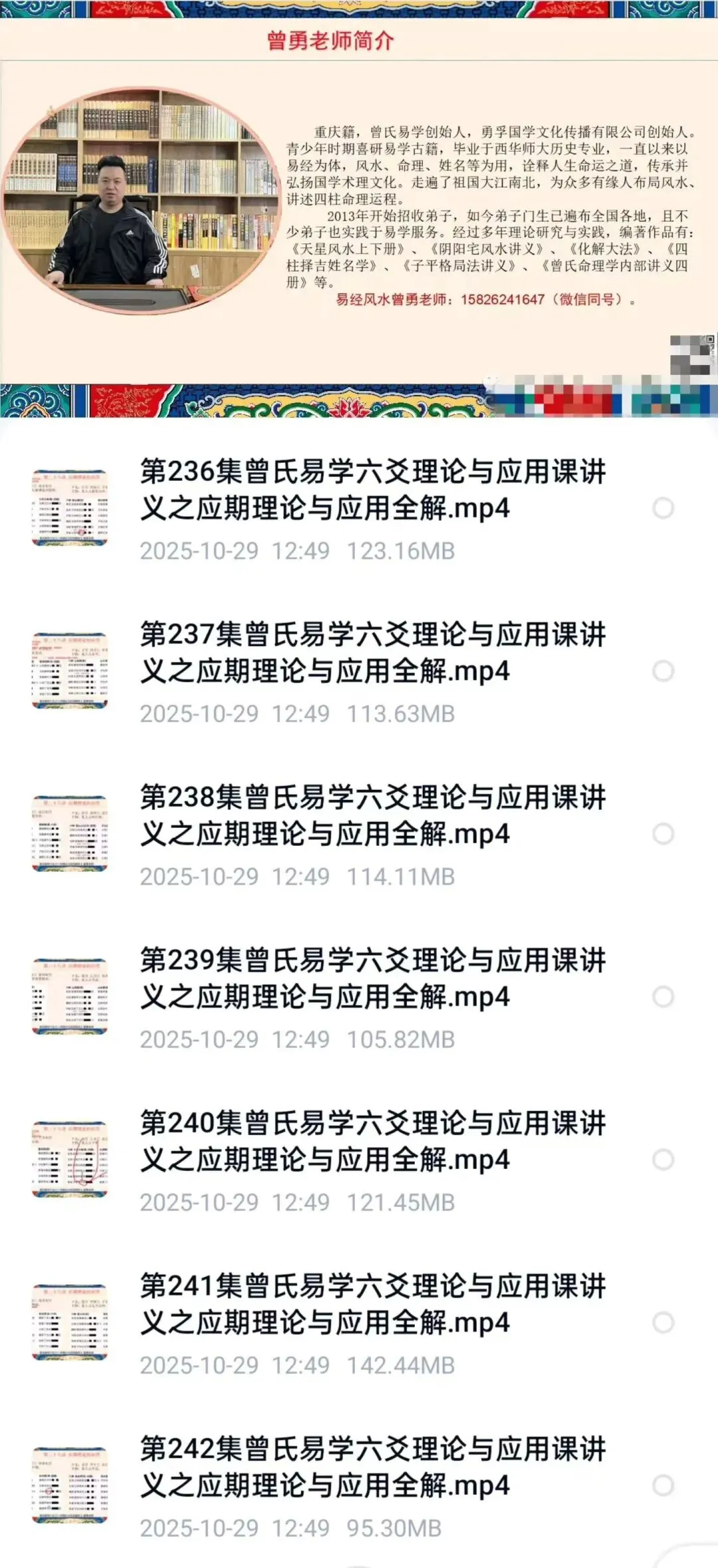 >【六爻】 曾勇曾氏易学六爻理论与应用讲义视频课程242集全集