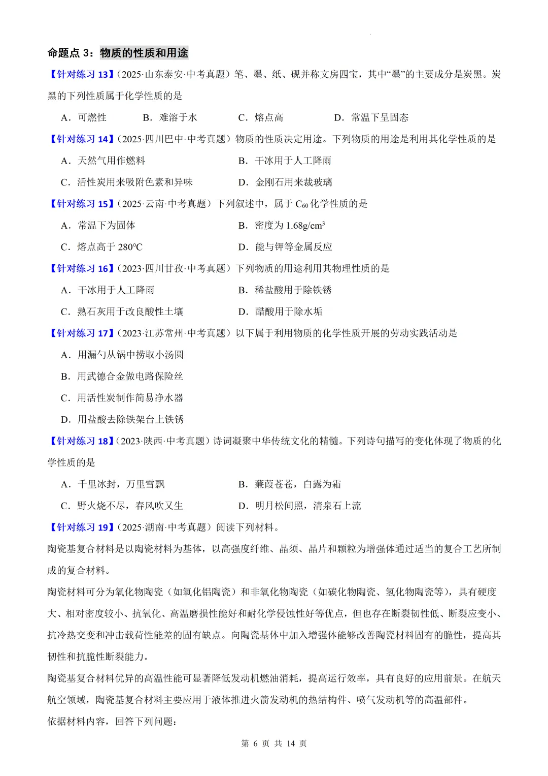 【讲义】备战2026年中考化学一轮复习精细讲义(全国通用