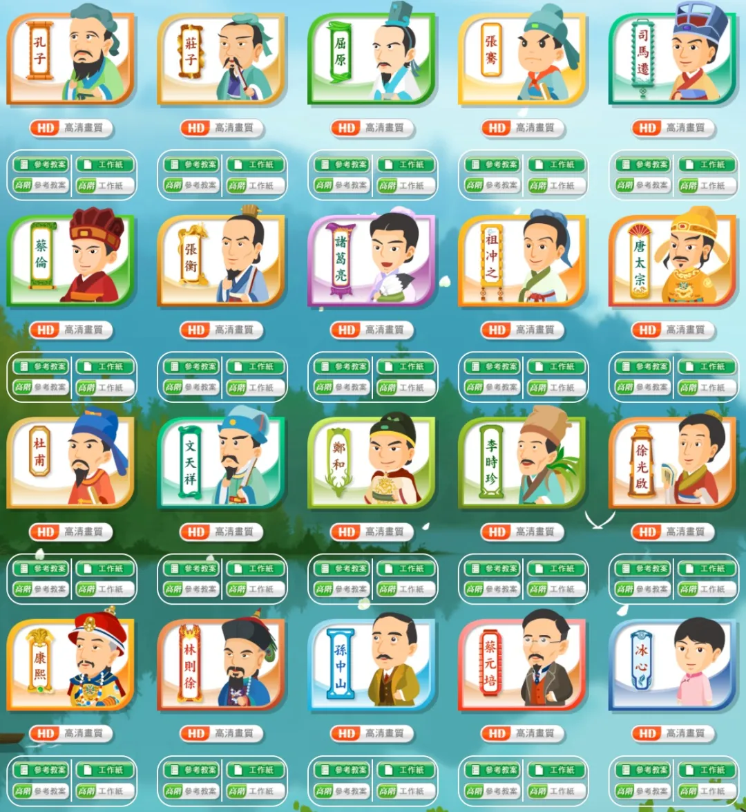 今日份资源为香港教育大学筹备四年、投入数以百万元制作的「看动画·学历史」。中国历史文化悠久,而历史中的人物犹如璀璨的明珠点缀在历史长河中,他们用自己的智慧和魄力不仅推动了中华文明的发展,更是留下了宝贵的文化财富。