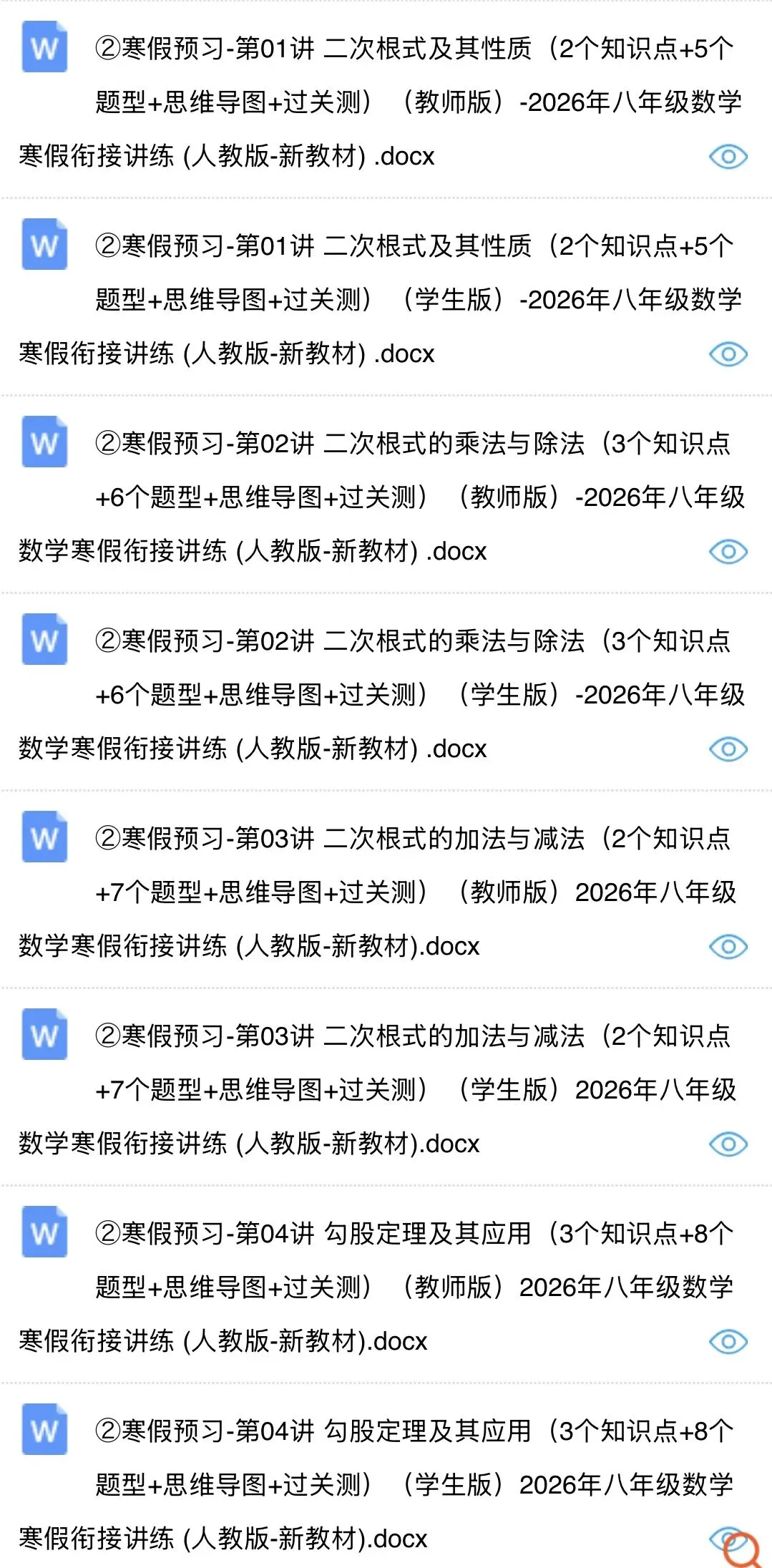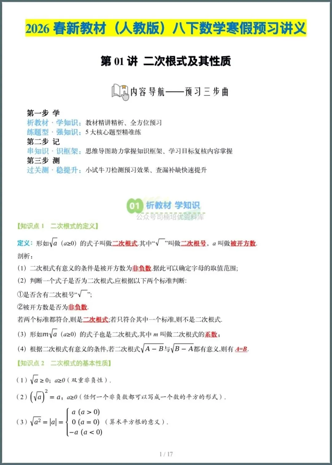 2026春八年级下册人教版数学寒假预习讲义【二次根式及其性质】专题+解析,有电子版可打印!