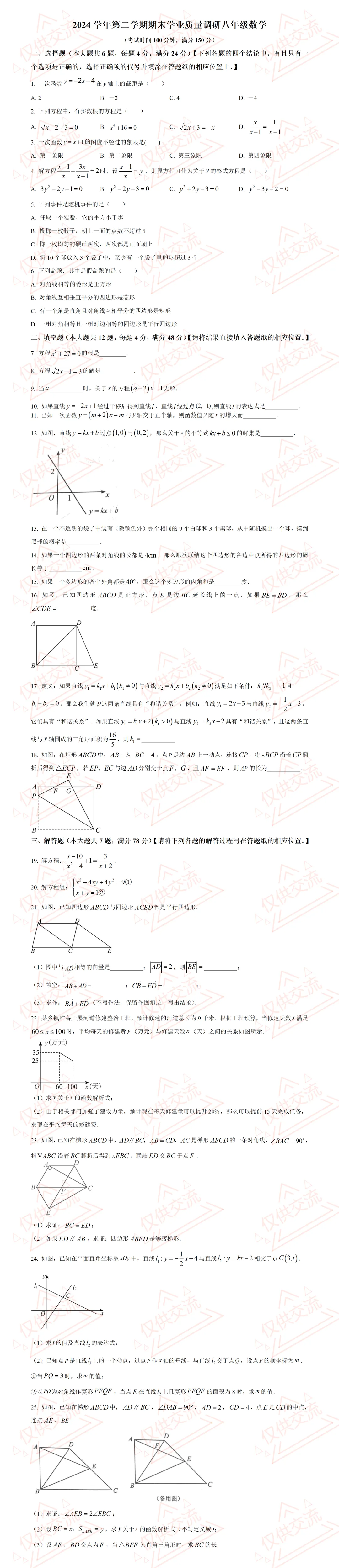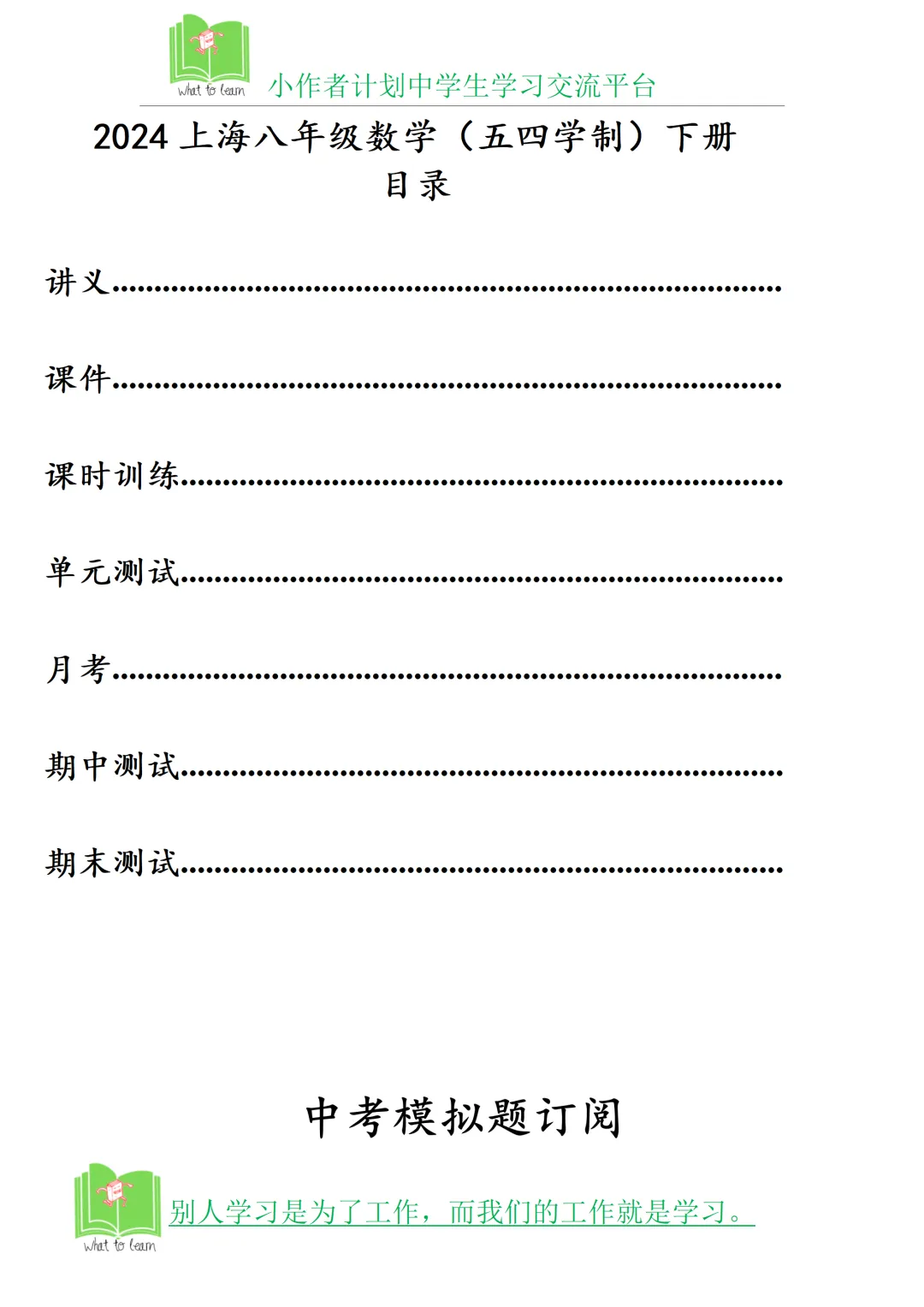 >上海各县区八年级数学下学期五四学制教材讲义同步训练月考期中期末试题及答案暨2024新课改初中数学义务教育教材