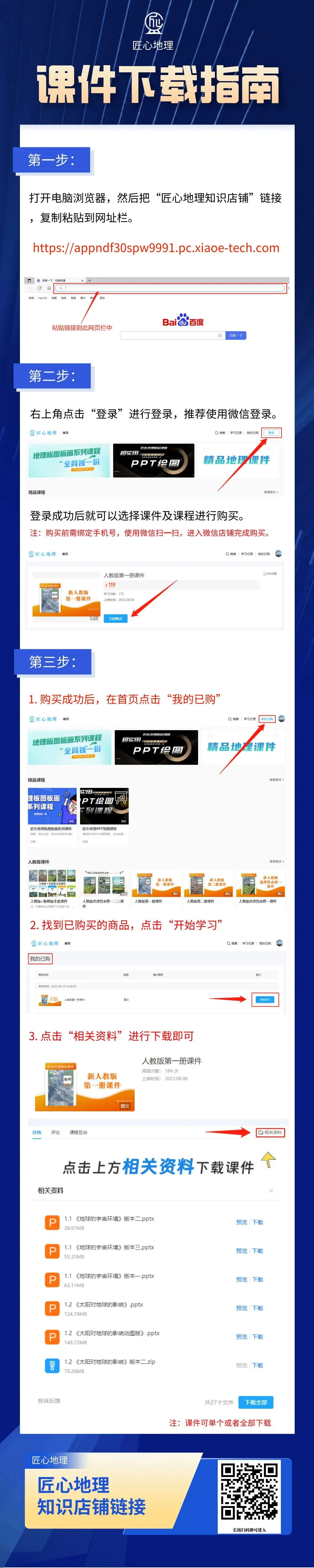关注匠心地理公众号,公众号首页底部进入匠心地理知识店铺,点击我的已购,即可下载。