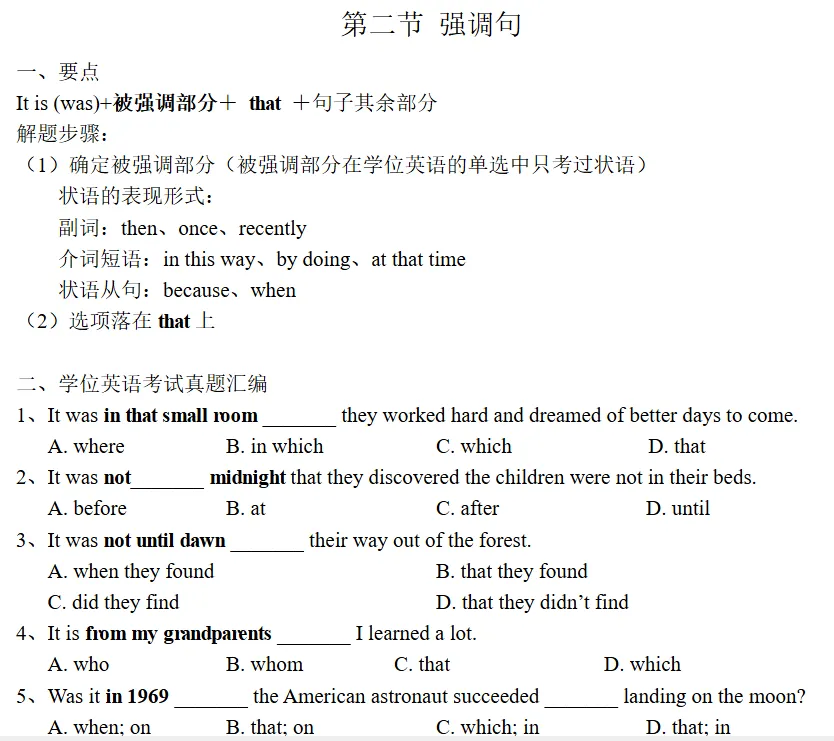 2026年学位英语考试将近,给大家整理了《学位英语考试强化班讲义》,包含语法结构、阅读理解、完形填空、翻译四大必考板块,建议同学们收藏或下载打印学习。