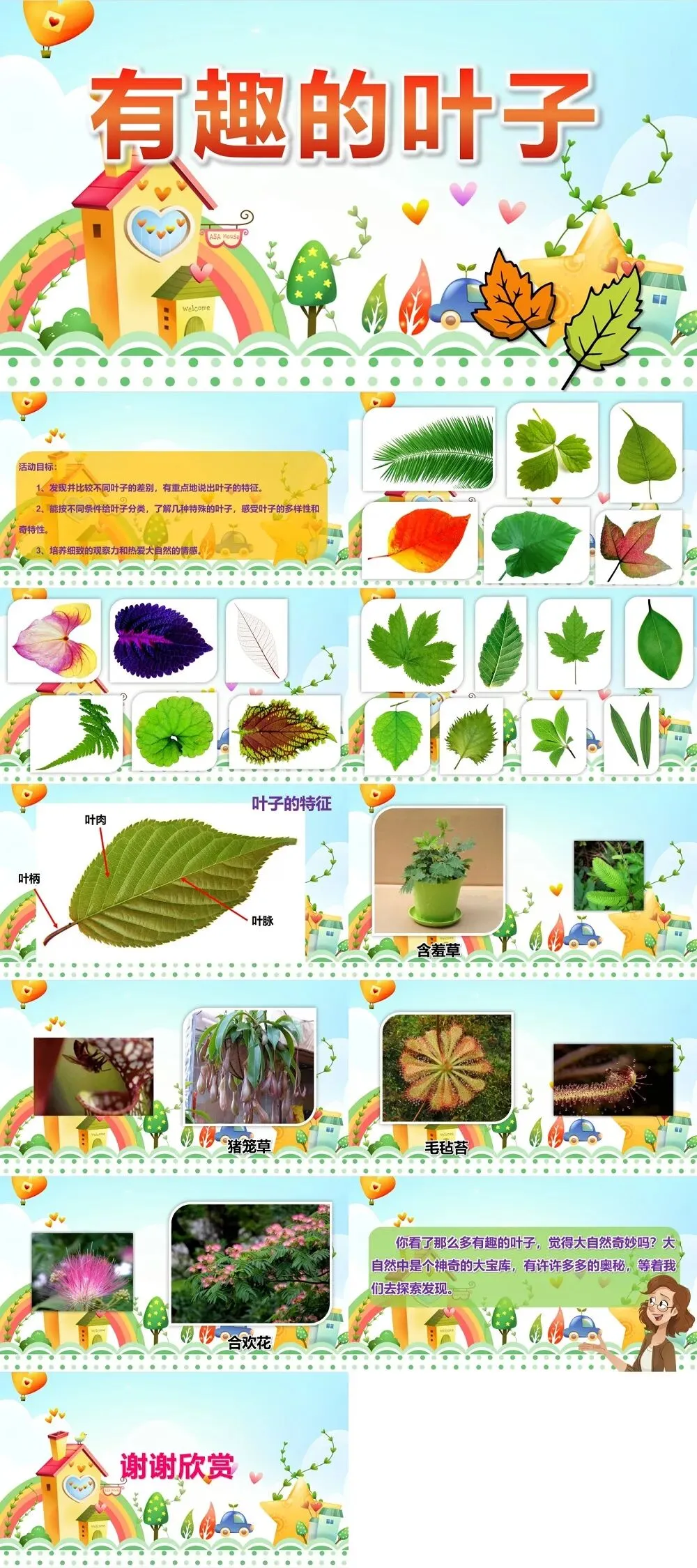 >中班科学领域《有趣的叶子》PPT课件+教案