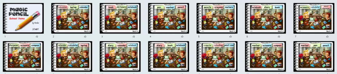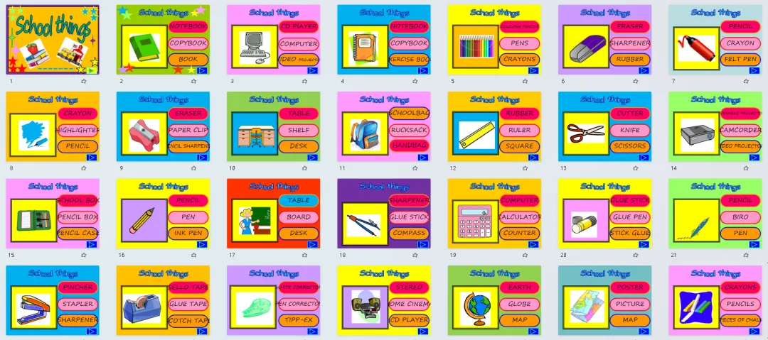 今天分享的是文具主题英语学习素材,含6套精美课件、数套教具和练习等!