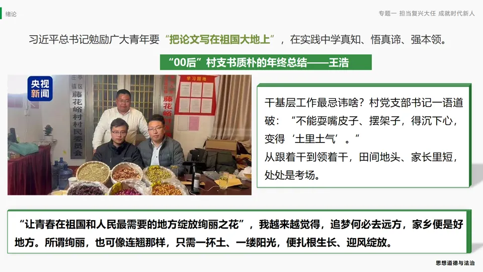 ——“00后”村支书王浩的年终总结等等。以下为部分课件的及逐字稿的展示。