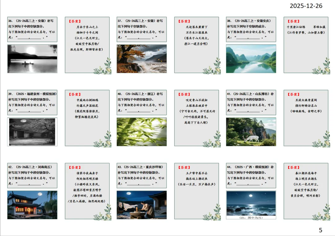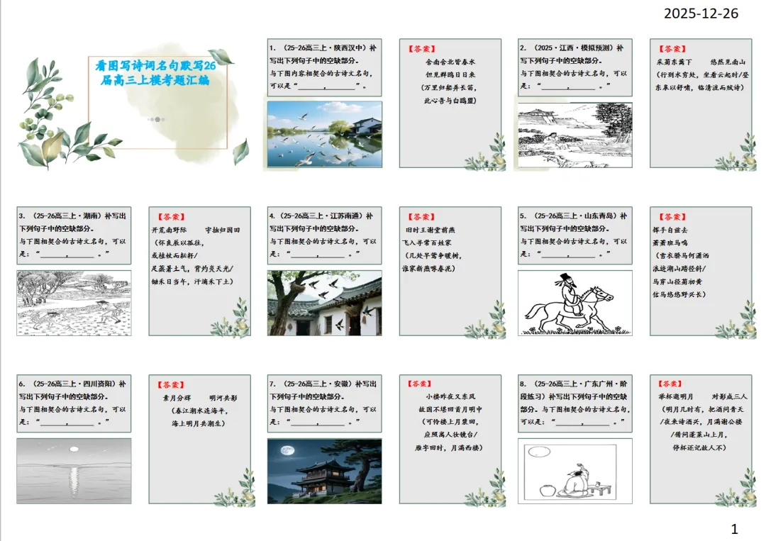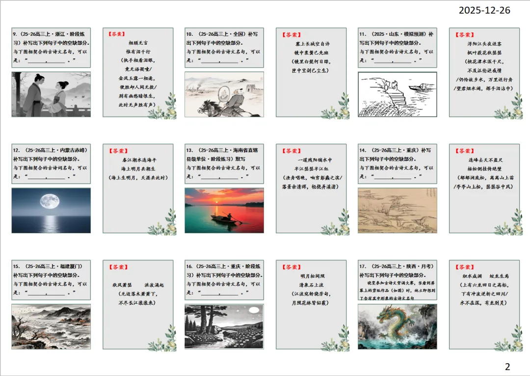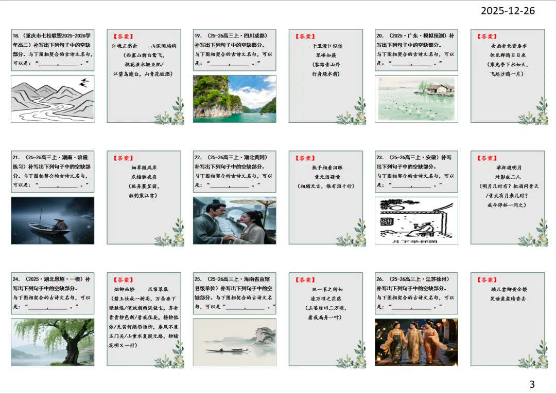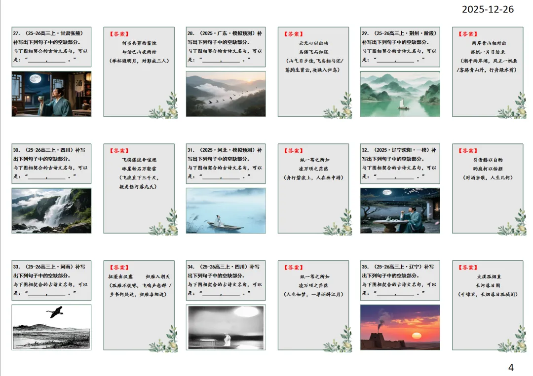 看图写诗词(名句默写)高三模考题汇编课件PPT