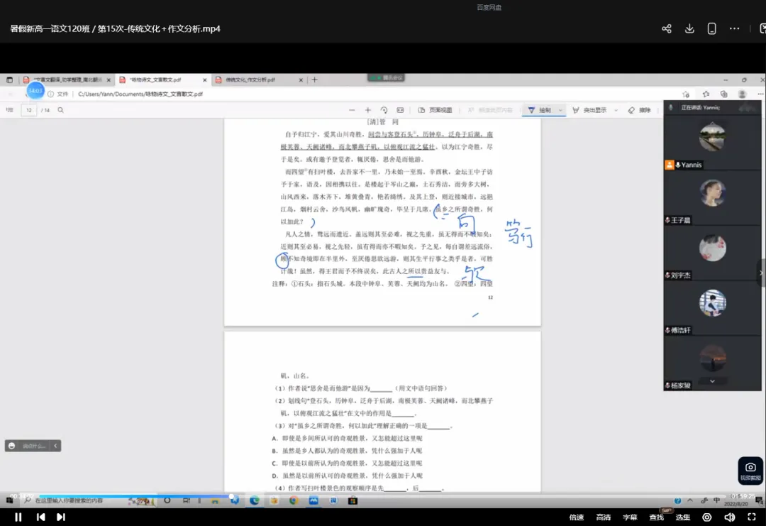 >四校朱老师高一春暑秋寒语文视频+讲义