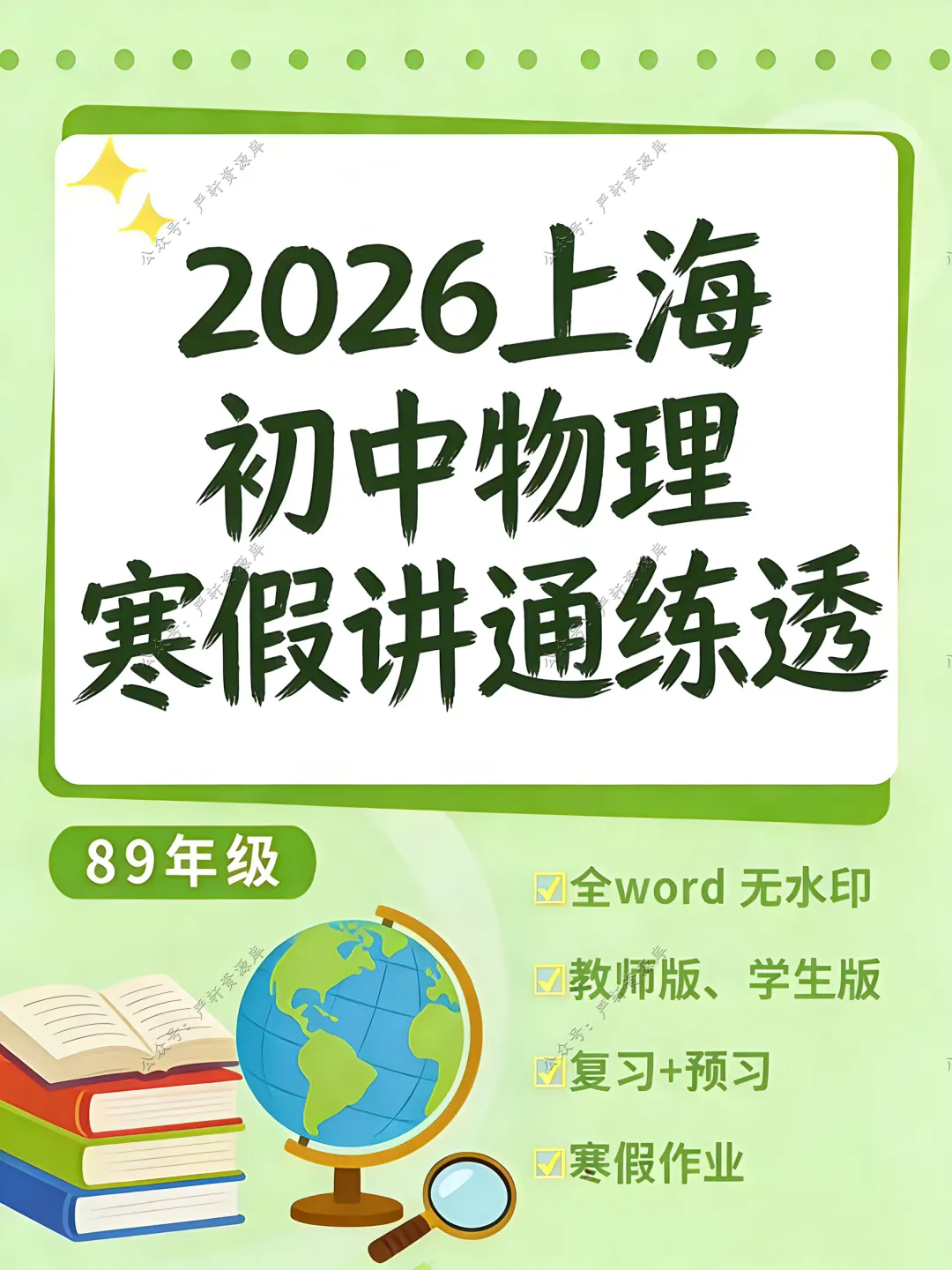 上海地区适用,全word无水印,可编辑可打印,教师版❗学生版齐全。讲通练透,包括上册专项复习讲义,下册预习讲义。并且配89上册寒假作业巩固提升之用。