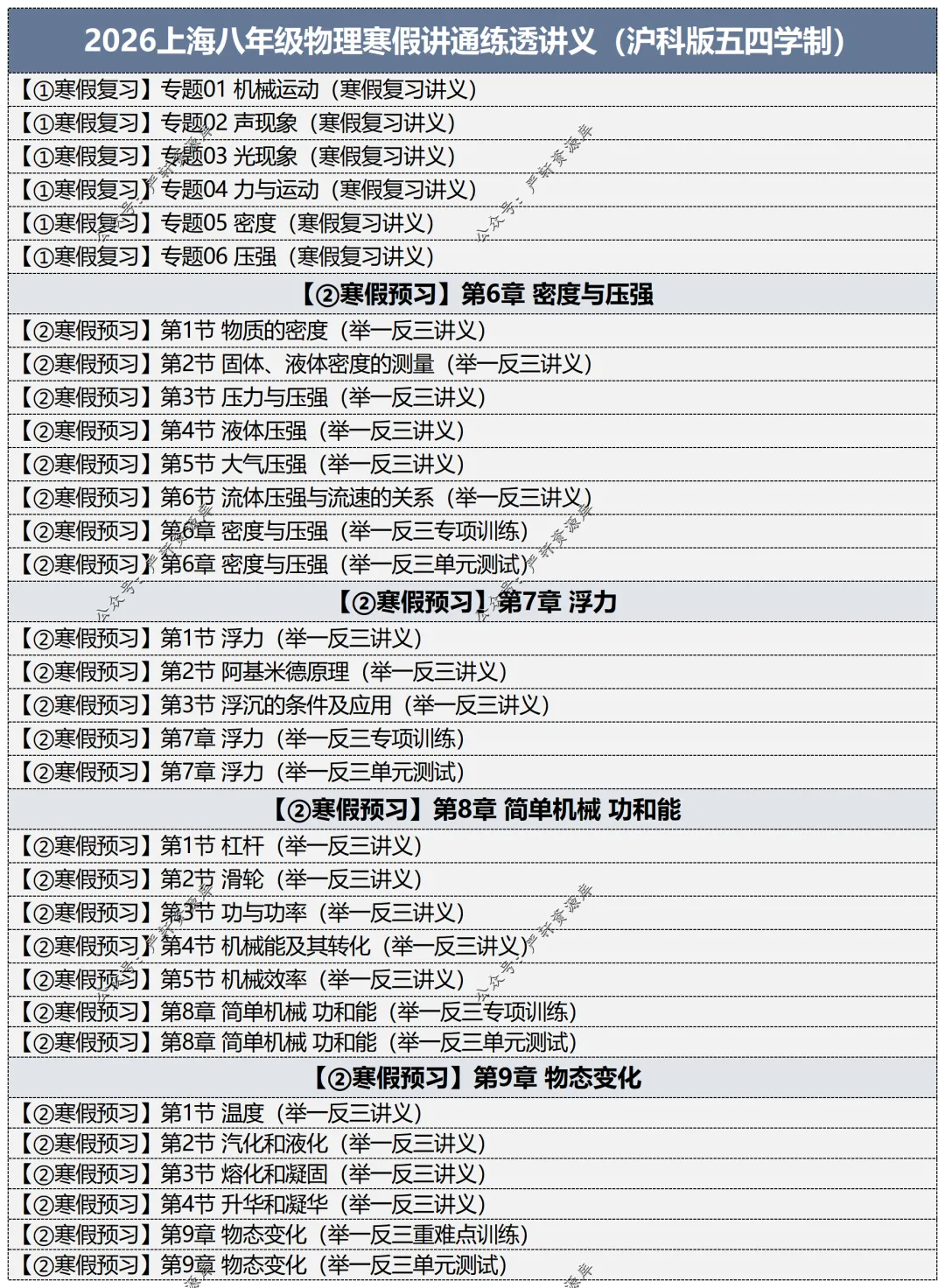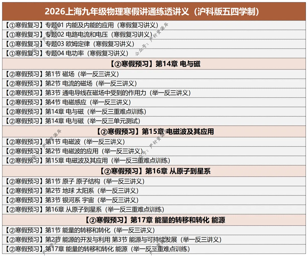 小编今日分享:2026上海沪科版初中物理寒假讲通练透讲义