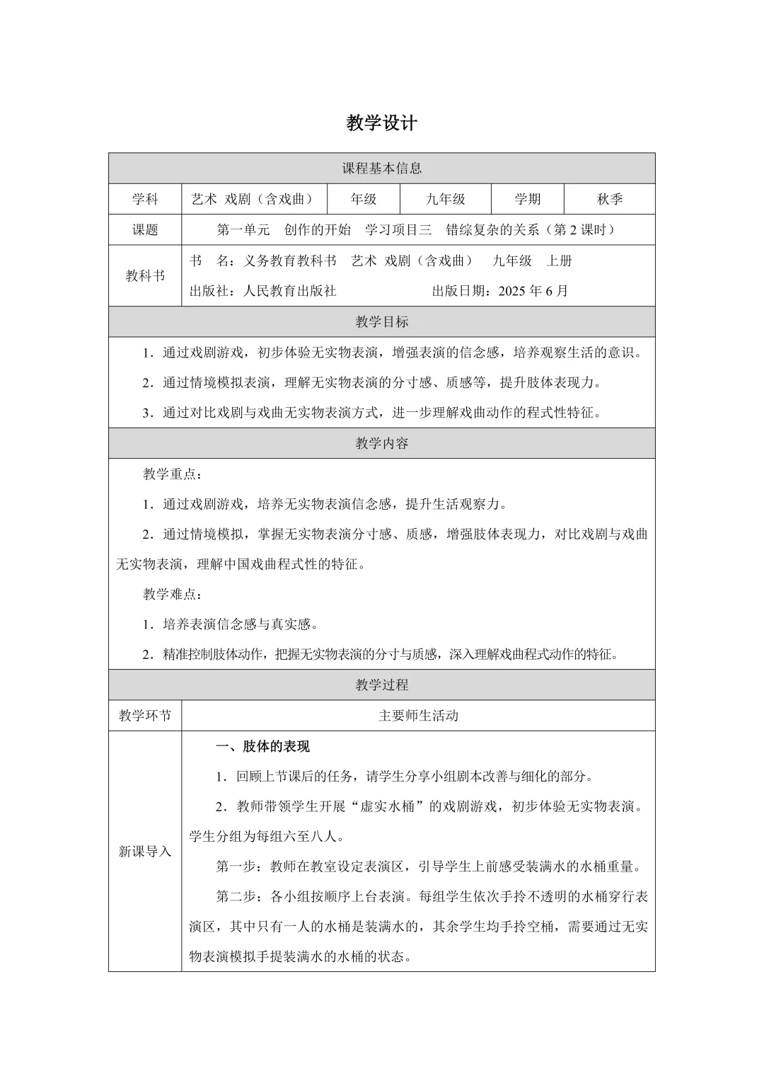 新教材 艺术戏剧九年级上册教案+课件