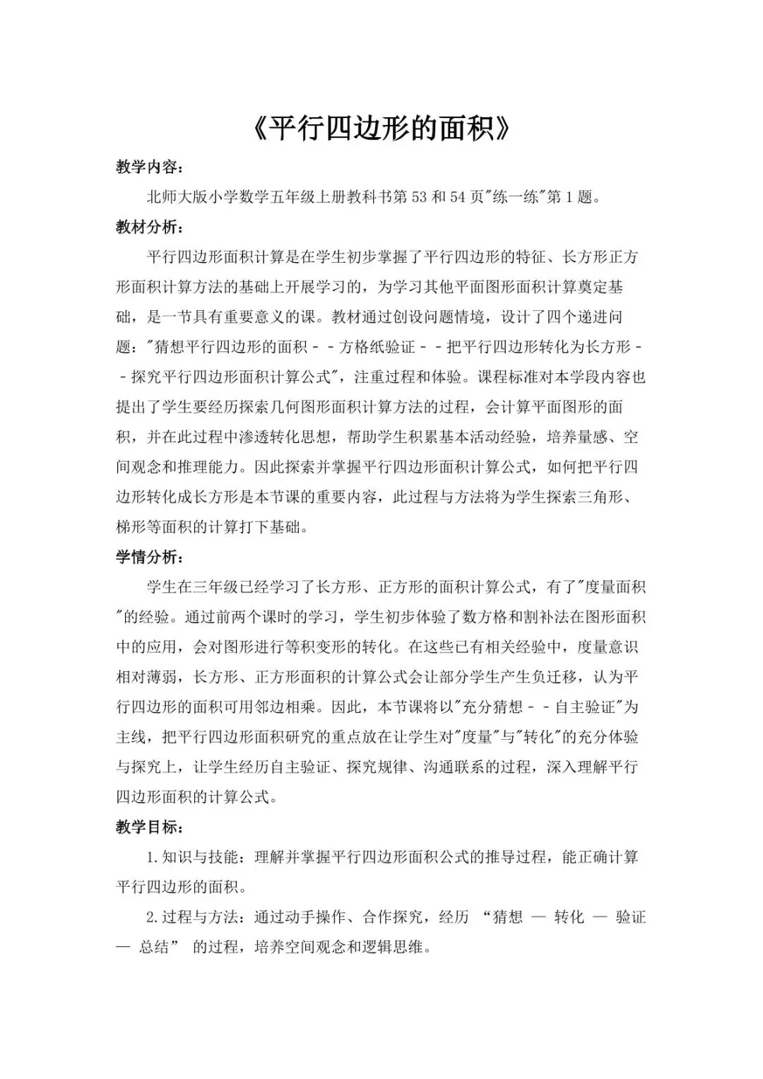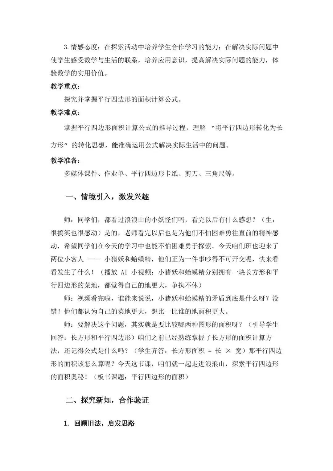 分享《平行四边形的面积》一课资源。