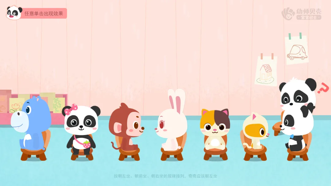 ——你们知道接下来奇奇应该朝哪个方向坐吗?为什么?(椅子按朝前、朝左的规律排列)
