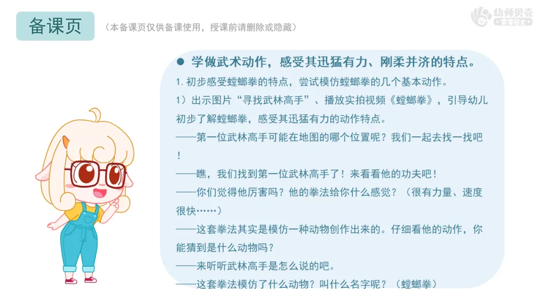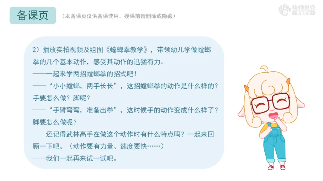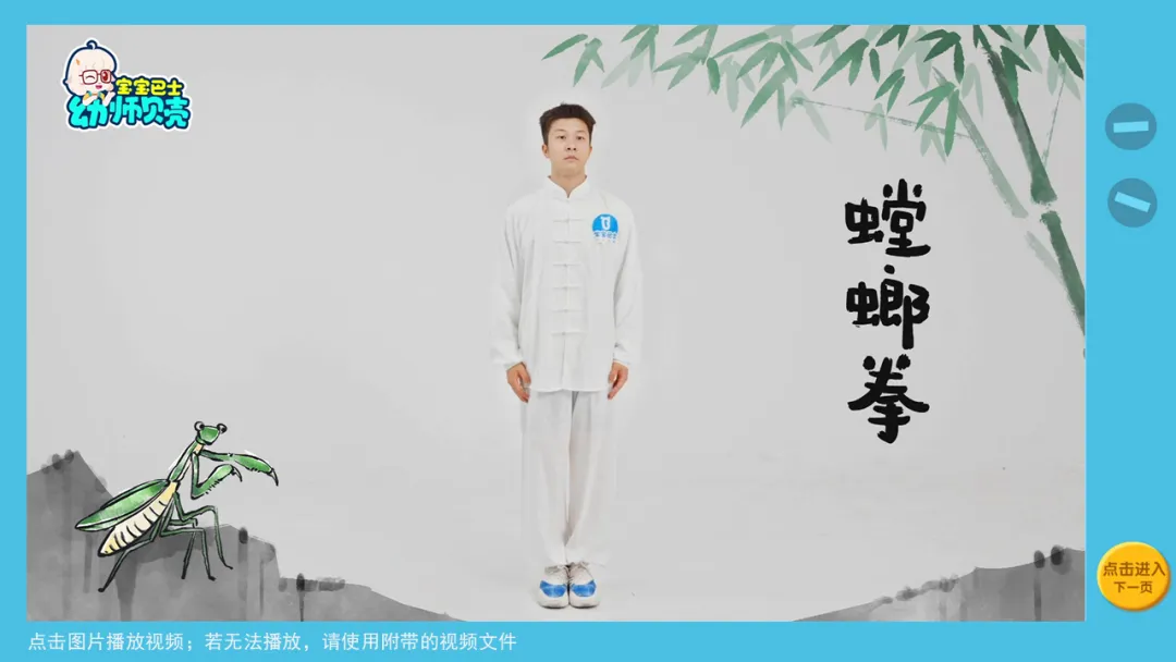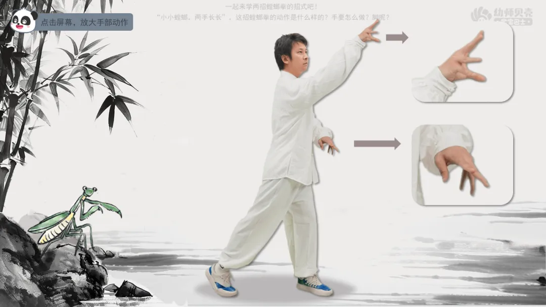 l尝试模仿螳螂拳、太极拳的部分动作,提升身体协调性与灵活性。