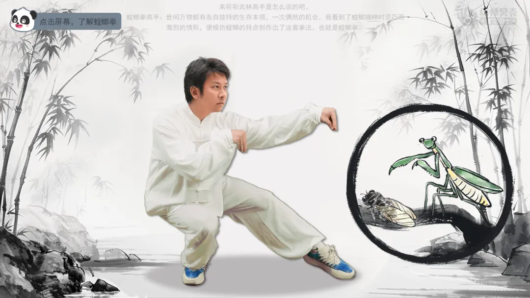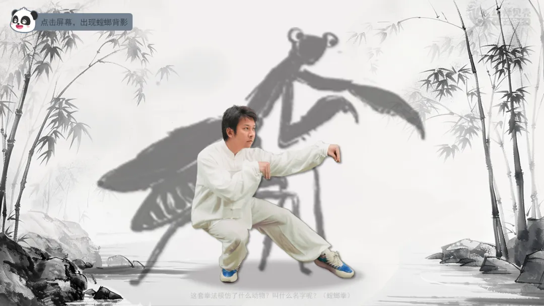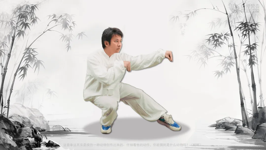 ——这套拳法其实是模仿一种动物创作出来的。仔细看他的动作,你能猜到是什么动物吗?