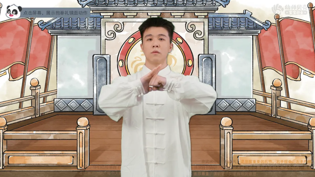 ——在比赛开始前,每个人都要学会一个重要的动作,叫做“抱拳礼”。跟着老师学一学吧!