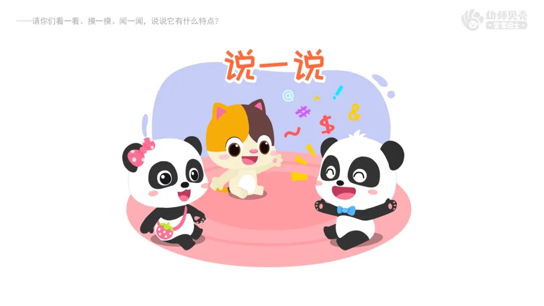 ——今天老师给大家带来了一样特别的东西。请你们看一看、摸一摸、闻一闻,说说它有什么特点?(细细的、干干的、闻起来有点香……)