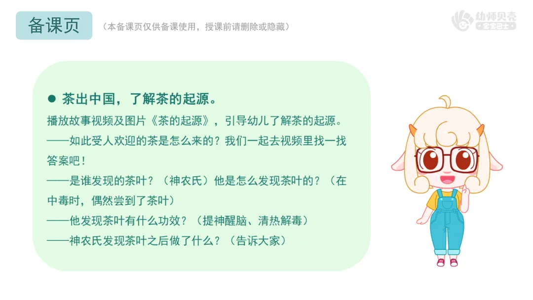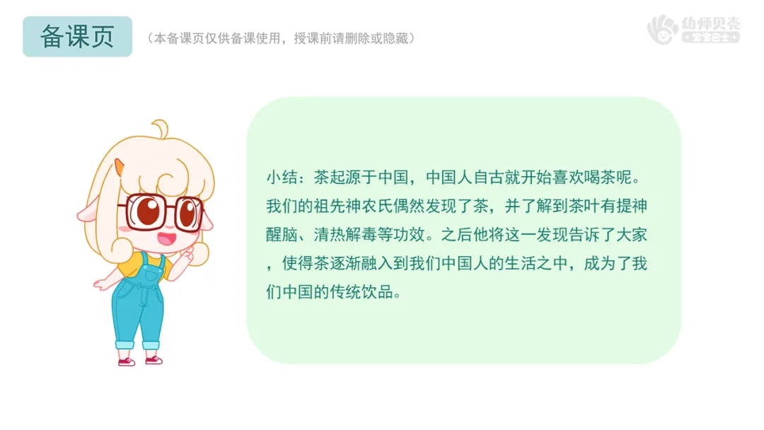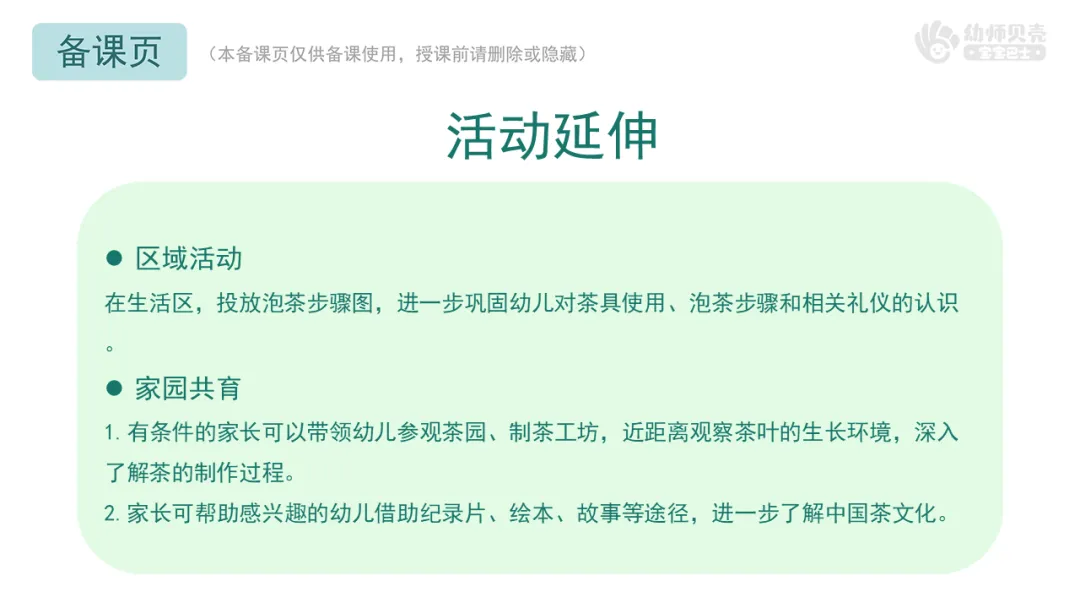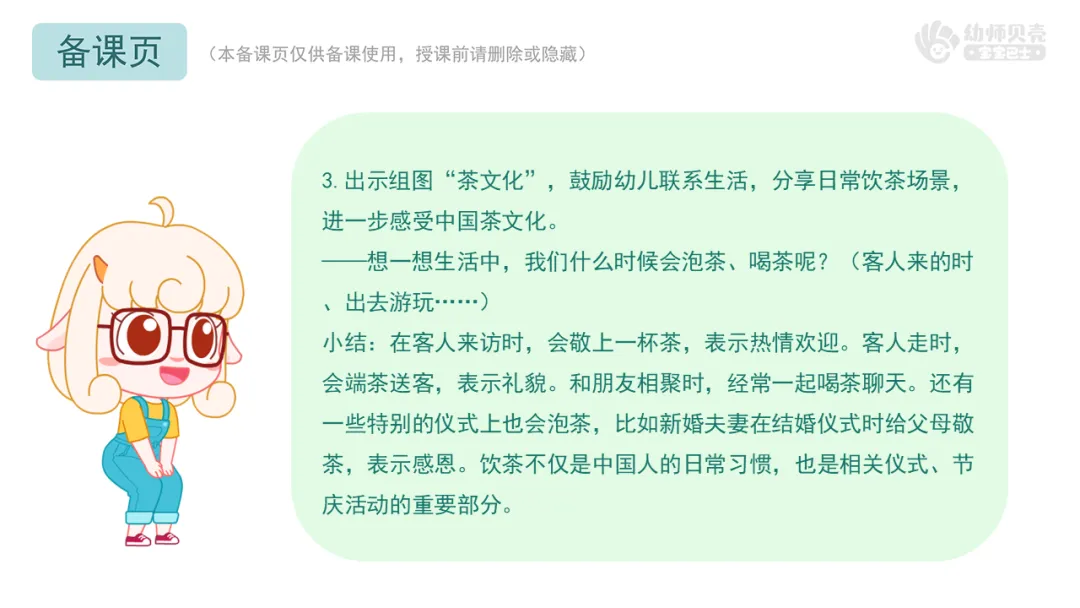 2.家长可帮助感兴趣的幼儿借助纪录片、绘本、故事等途径,进一步了解中国茶文化。