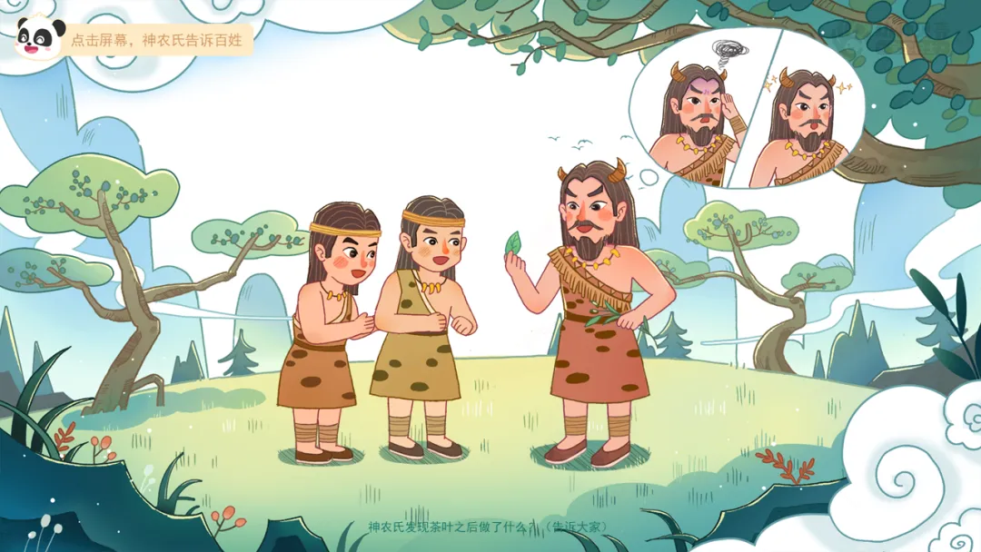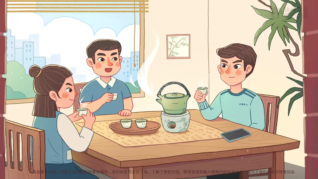 播放故事视频及图片《茶的起源》,引导幼儿了解茶的起源。