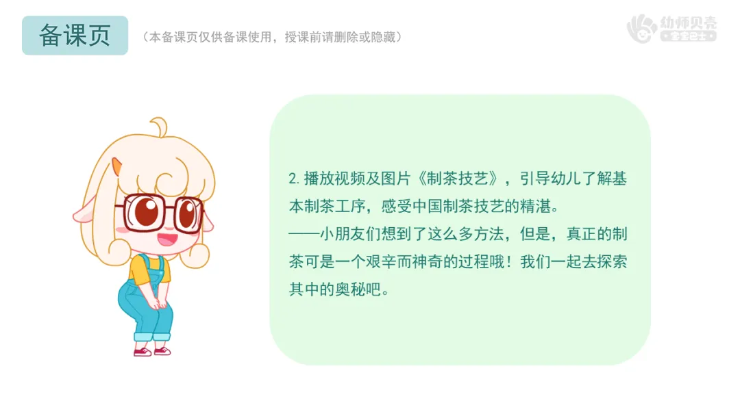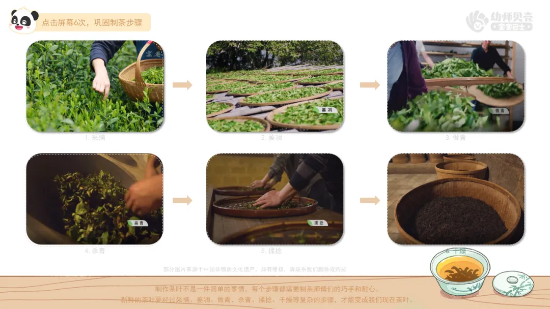 ——小朋友们想到了这么多方法,但是,真正的制茶可是一个艰辛而神奇的过程哦!我们一起去探索其中的奥秘吧!