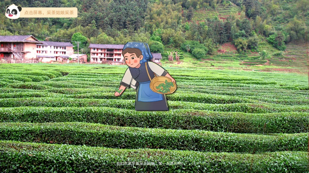 ——制作茶叶的第一步需要做什么?(将茶叶采摘下来)我们也来学着采茶姑娘,采一采茶叶吧!