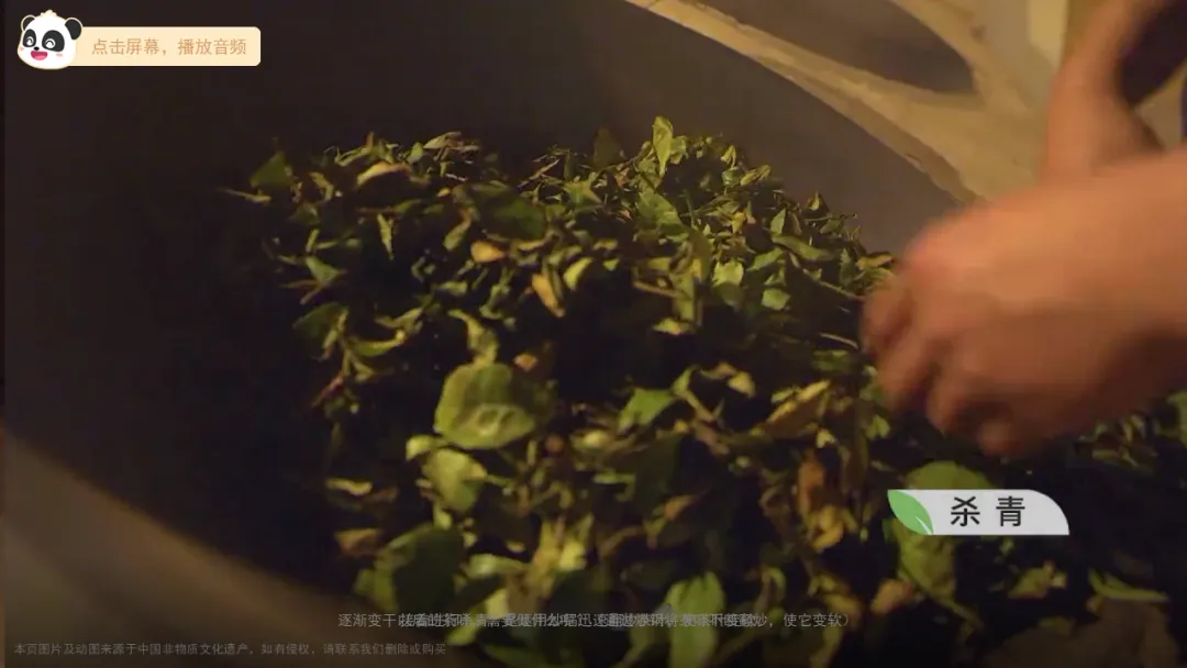 2.播放视频及图片《制茶技艺》,引导幼儿了解基本制茶工序,感受中国制茶技艺的精湛。