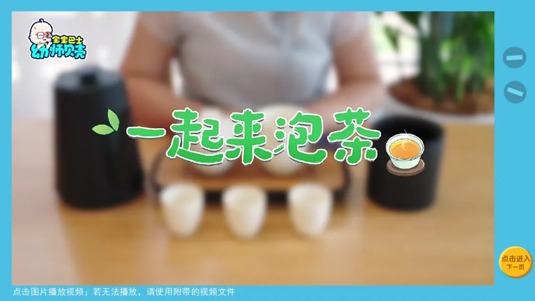 1.播放实拍视频及图片《泡茶》,引导幼儿学习泡茶的步骤。