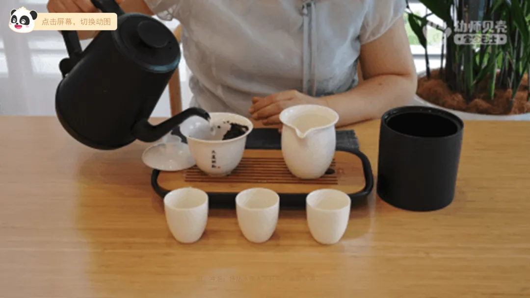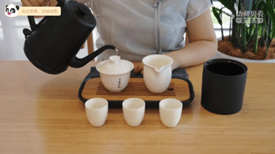 ——用你们桌上的茶具,跟着老师一起来动手泡茶吧。