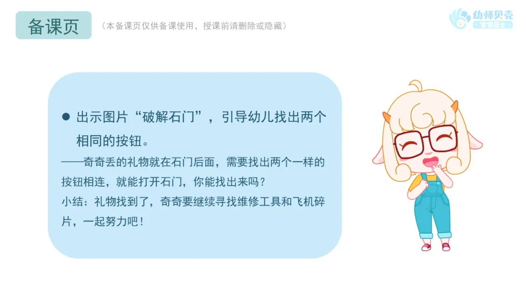 ——奇奇丢的礼物就在石门后面,需要找出两个一样的按钮相连,就能打开石门,你能找出来吗?