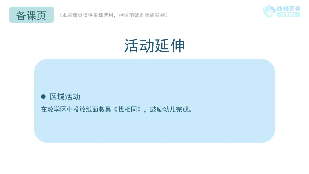 在数学区中投放纸面教具《找相同》,鼓励幼儿完成。