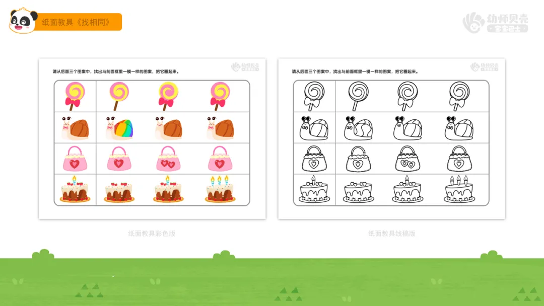 2.分发纸面教具,鼓励幼儿圈出正确的图案。