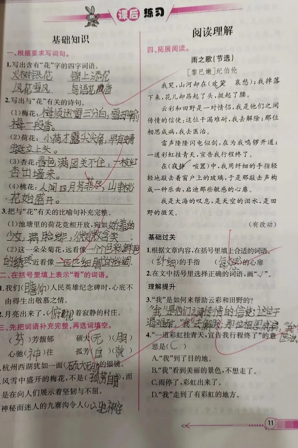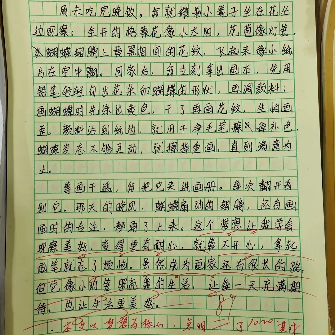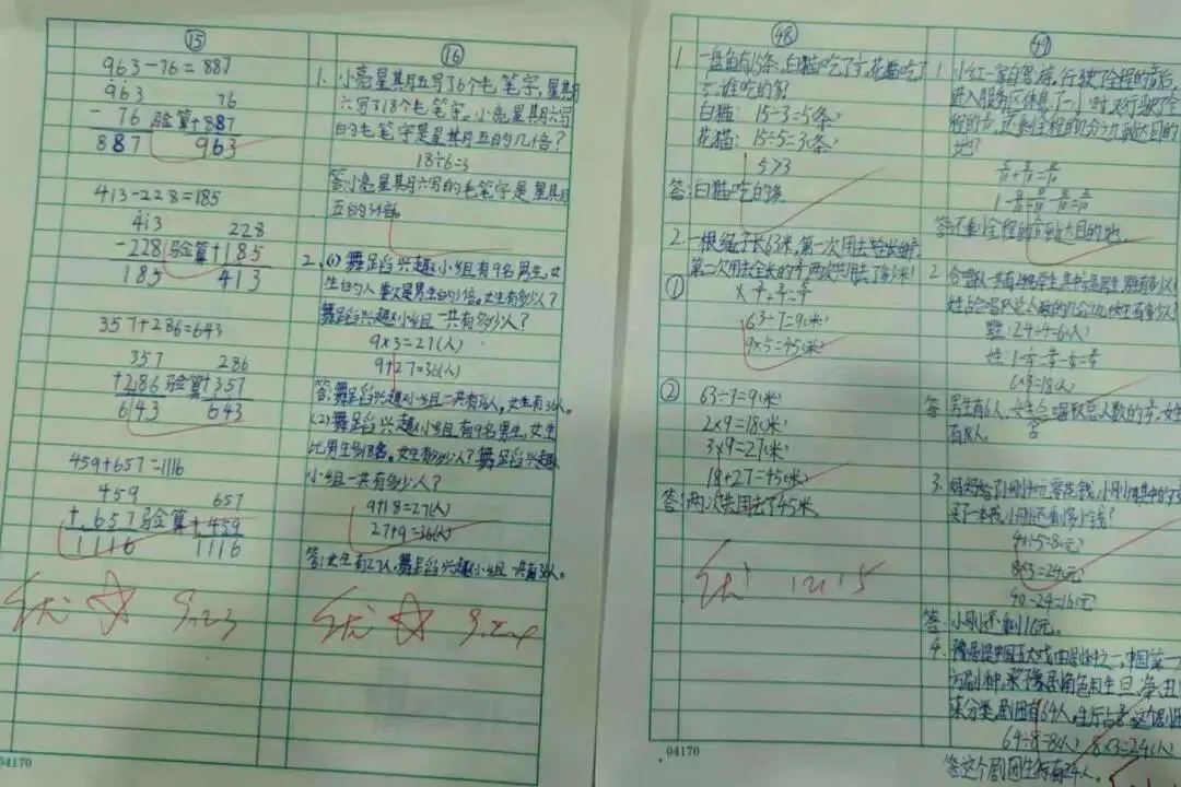 语文作业涵盖生字书写、习作表达、积累运用等模块,低年级注重基础夯实,中高年级着力能力拓展,部分教师创新设计分层作业,切实满足学生个性化需求;批改环节坚持精批细改,评语兼具指导性与激励性,“二次批改”“面批面改”等机制显著提升了反馈实效。