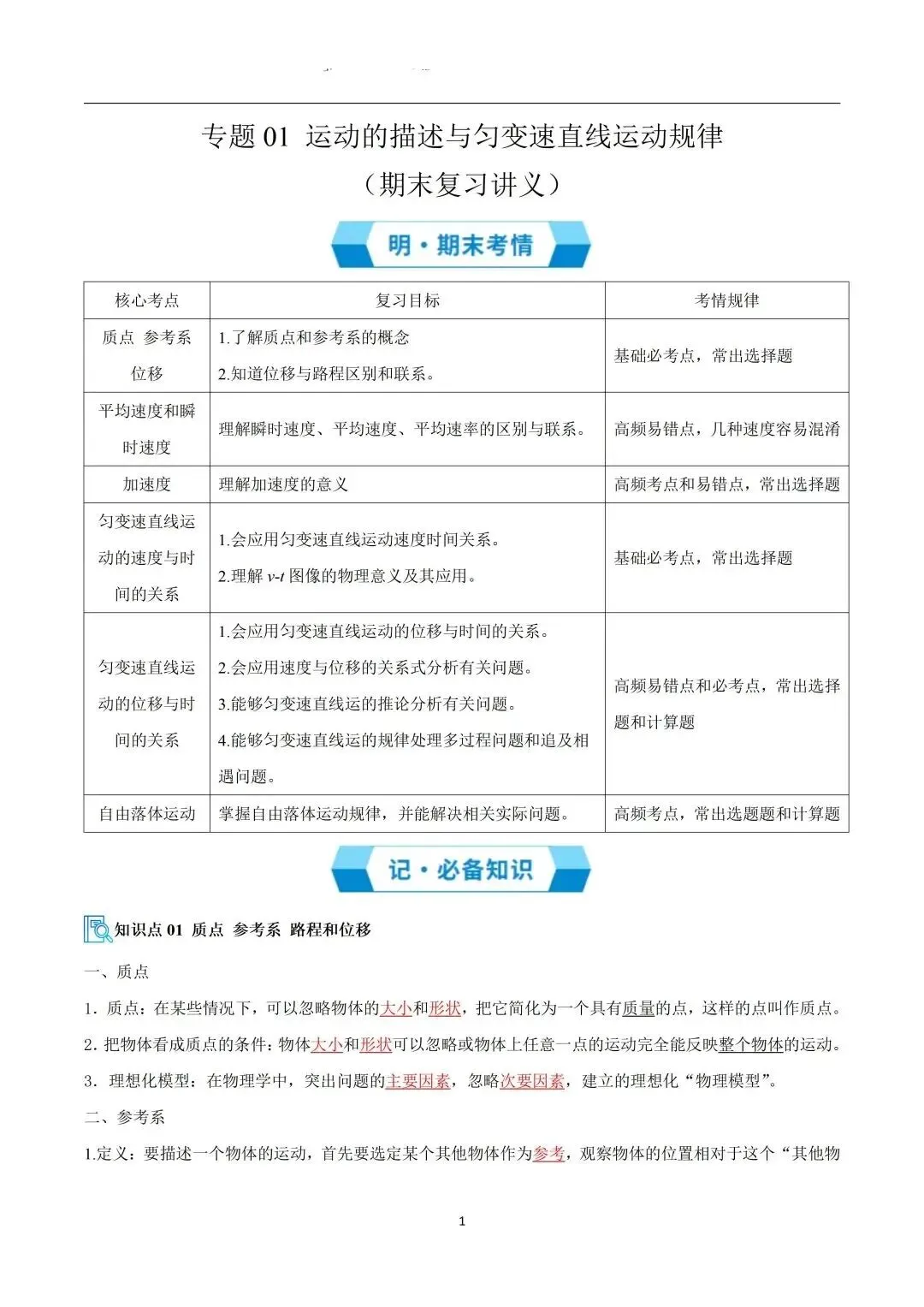 2026年高一物理上学期期末复习——讲义+课件+知识清单+专项训练+模拟试卷(word+ppt)无水印高清电子版 网盘打包免费下载