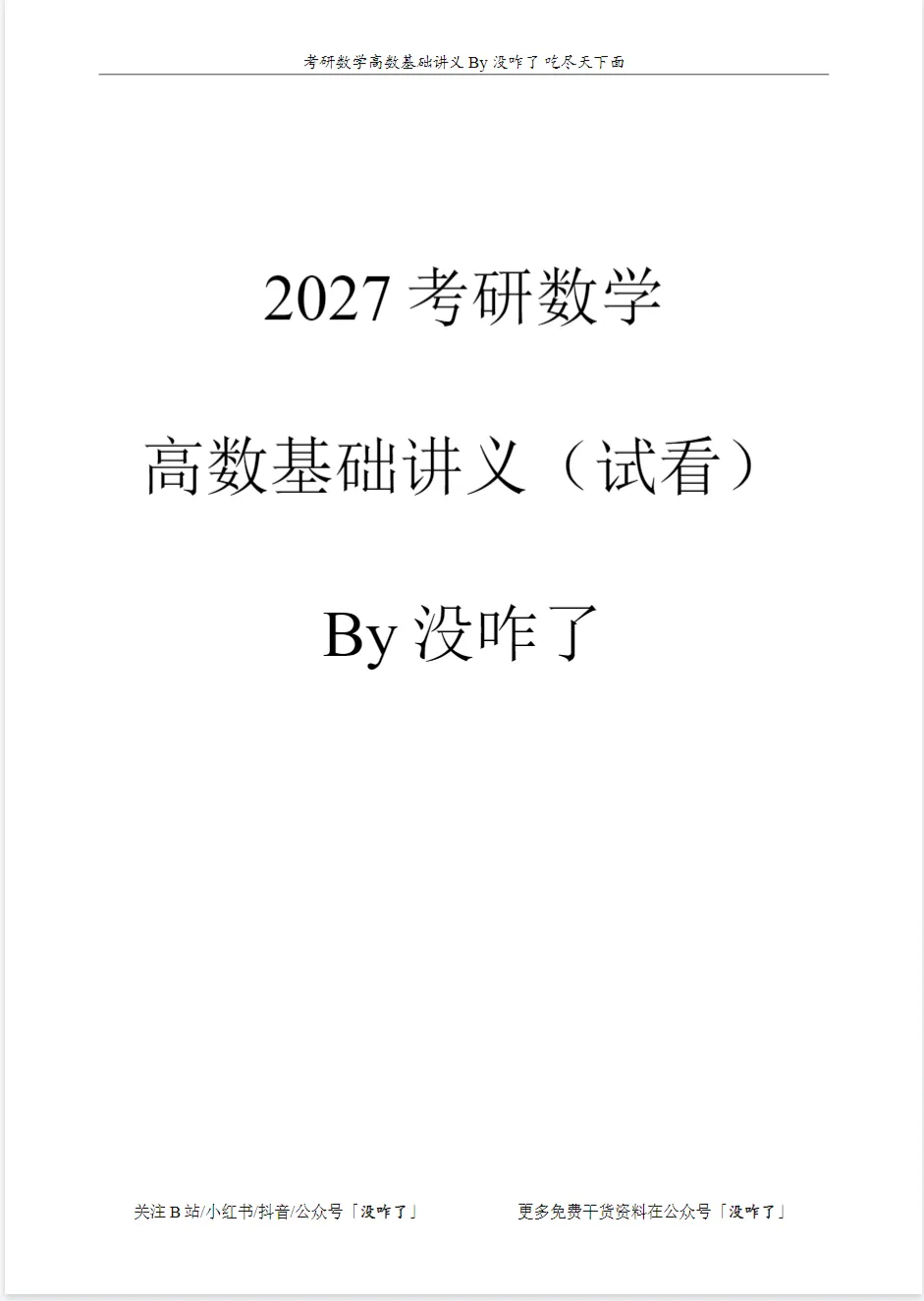 各位准研究生们大家好,今天分享:没咋了《高数基础讲义》。