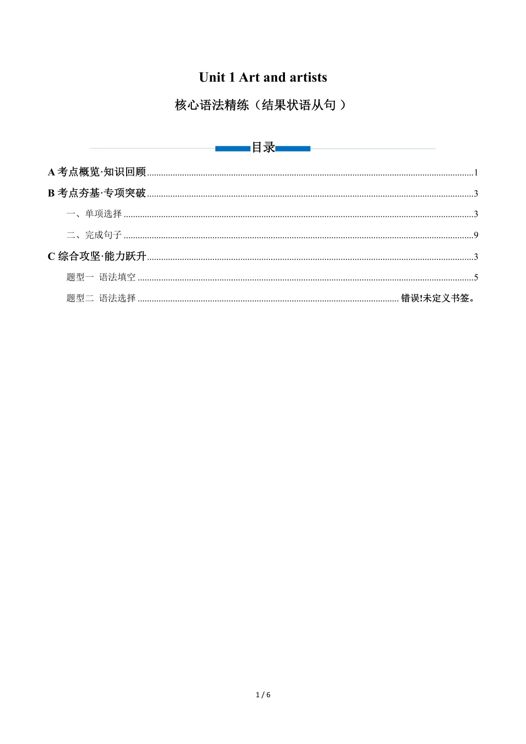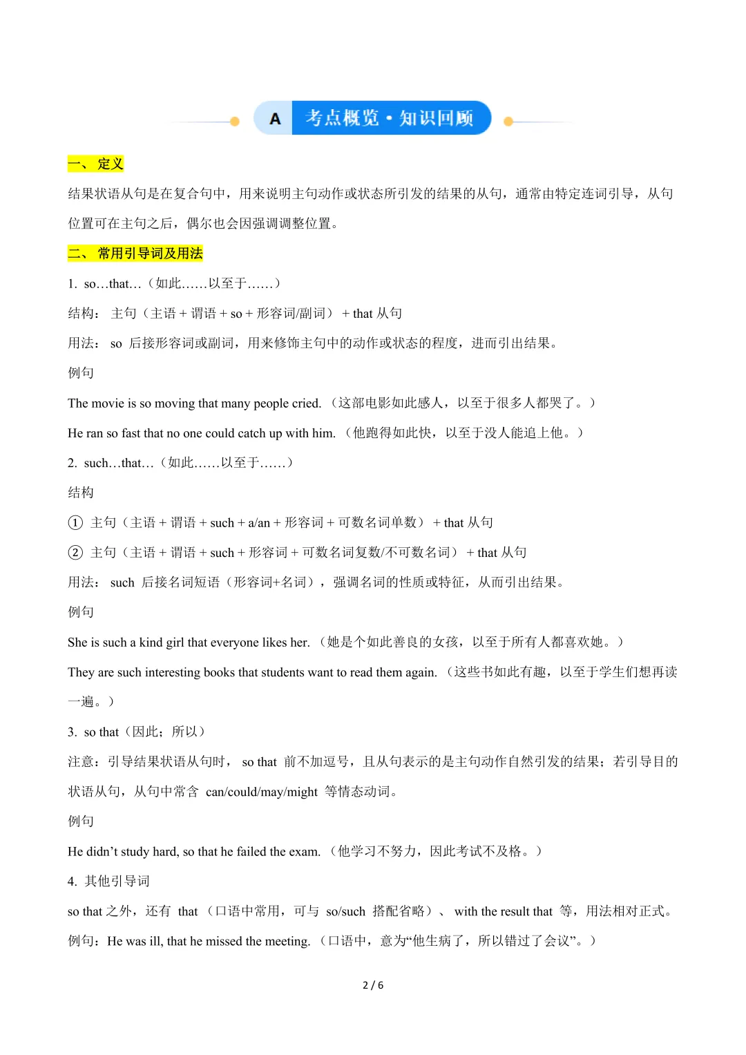 下学期预习讲义 | 8年级英语 | Unit 1 Art and artists 结果状语从句(原卷版&解析版)