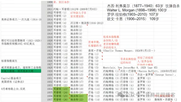 梳理年表的这种学习方式,能帮助大家把各个历史人物都看得很透,锻炼大家做投资时看长期的底层逻辑思考能力,尤其是对人物和时代背景交汇的思考,非常重要!
