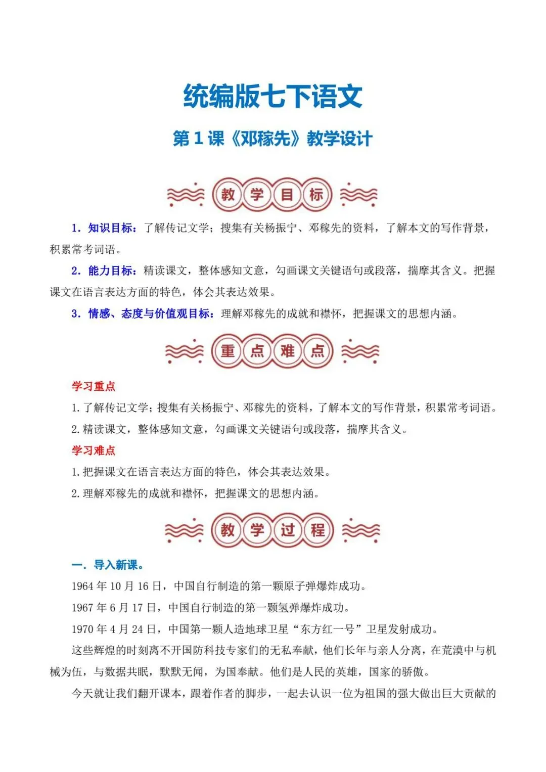 2026春新七年级下册语文教案+PPT课件+讲义(第一至六单元全)多套