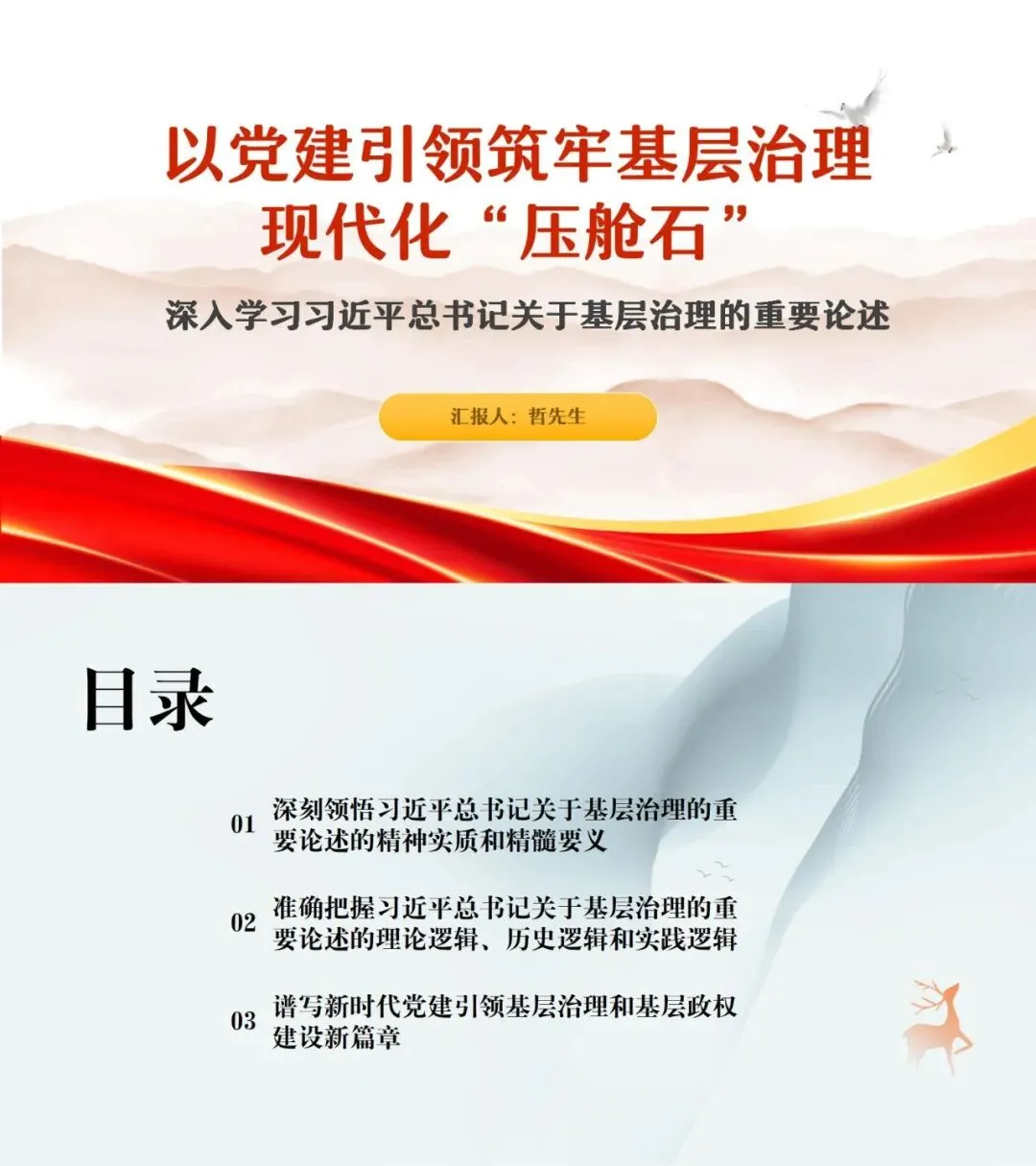 【精品课件】以党建引领筑牢基层治理现代化“压舱石:深入学习关于基层治理的重要论述(2万字+50页PPT)