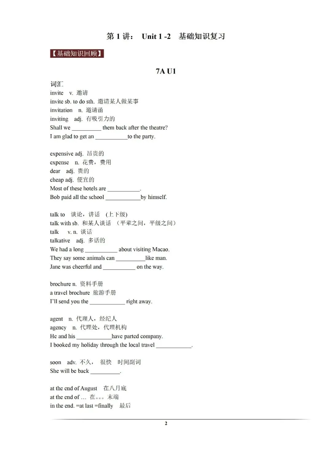 沪教版初中英语寒假班讲义-HJ012