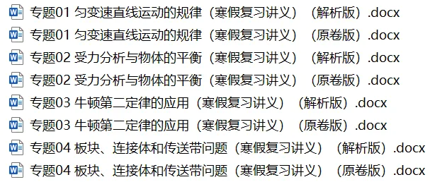 >【寒假讲义】2026版高一物理寒假复习预习讲义(word版)限时下载!