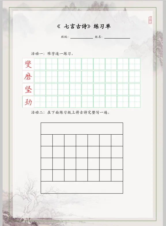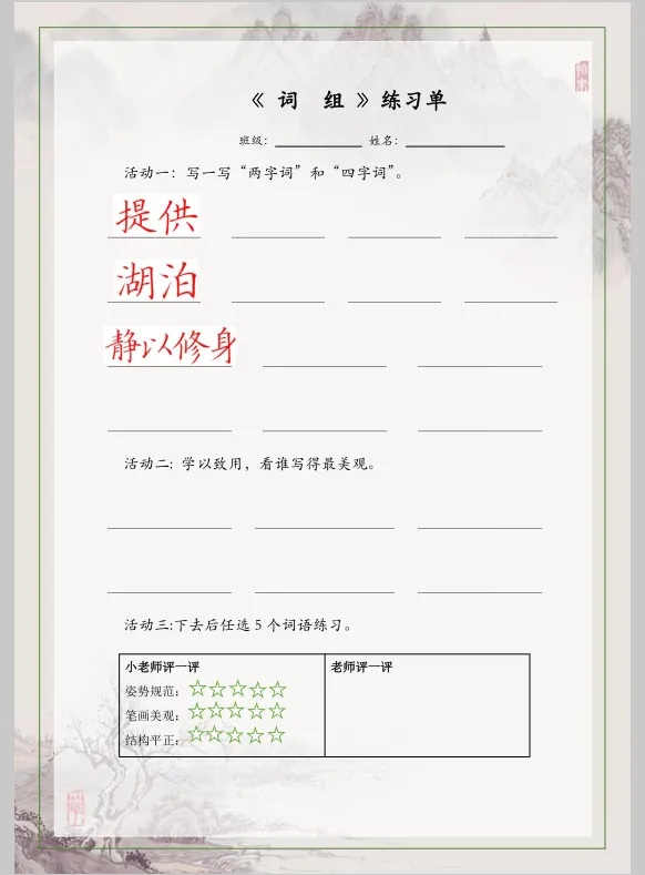 5年级下册硬笔16课时(课件|教案|同步练习单|教学计划)分享