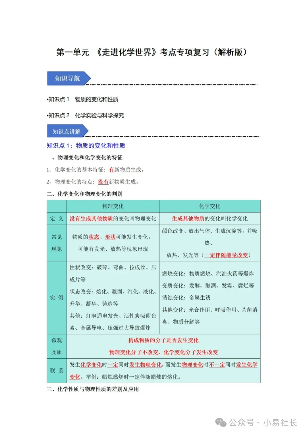 化学——九年级上册知识讲义(人教版2024)