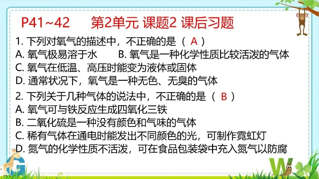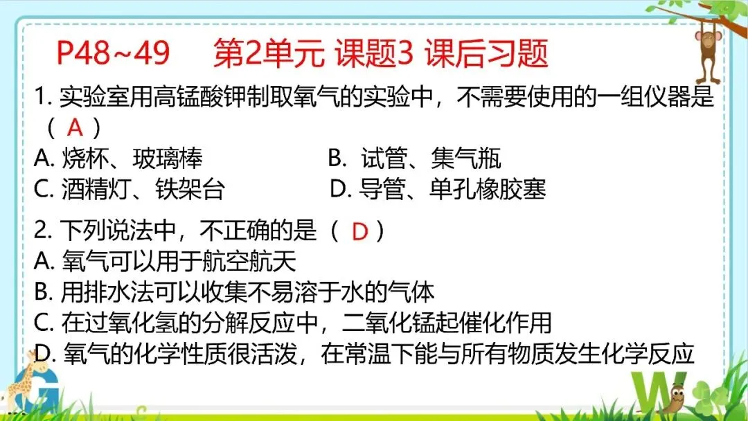 【希沃课件】人教版九年级化学第2单元课后习题与复习提高教学课件欣赏!