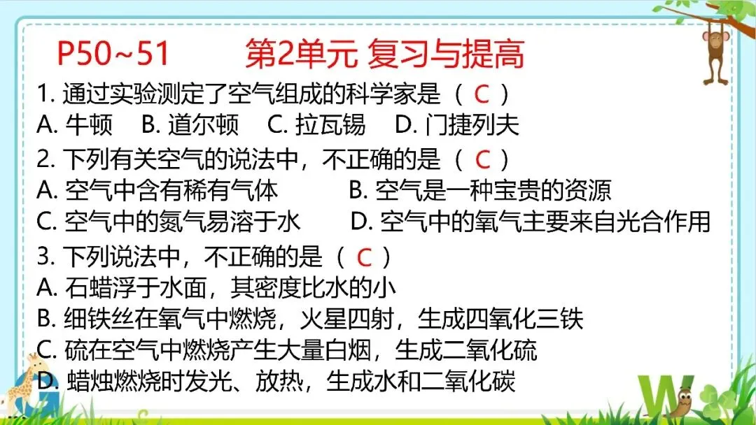 >【希沃课件】人教版九年级化学第2单元课后习题与复习提高教学课件欣赏!