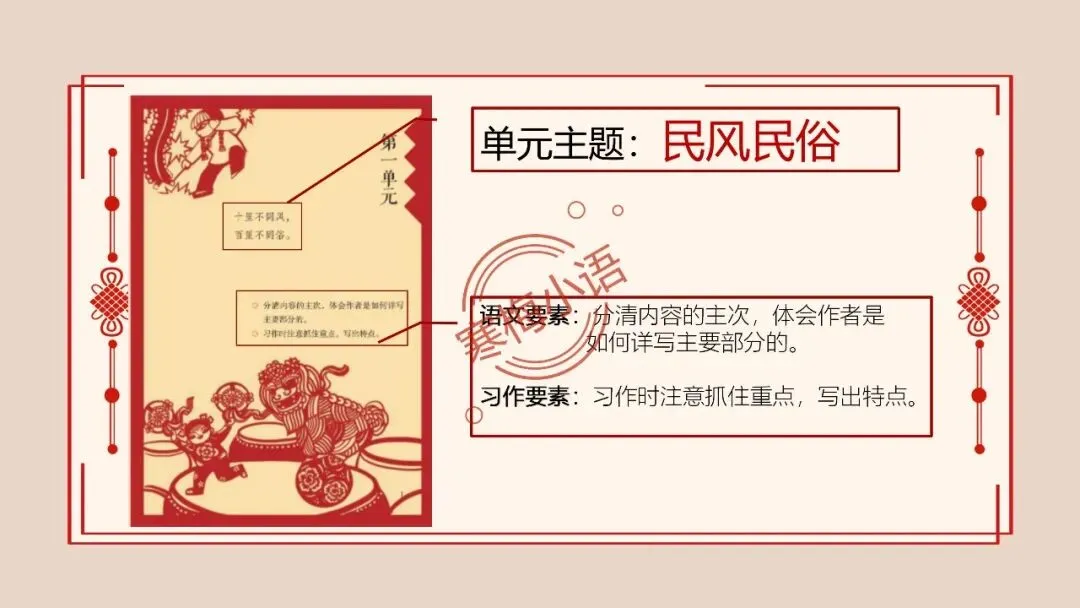 师:本单元的人文主题就是“民风民俗”。