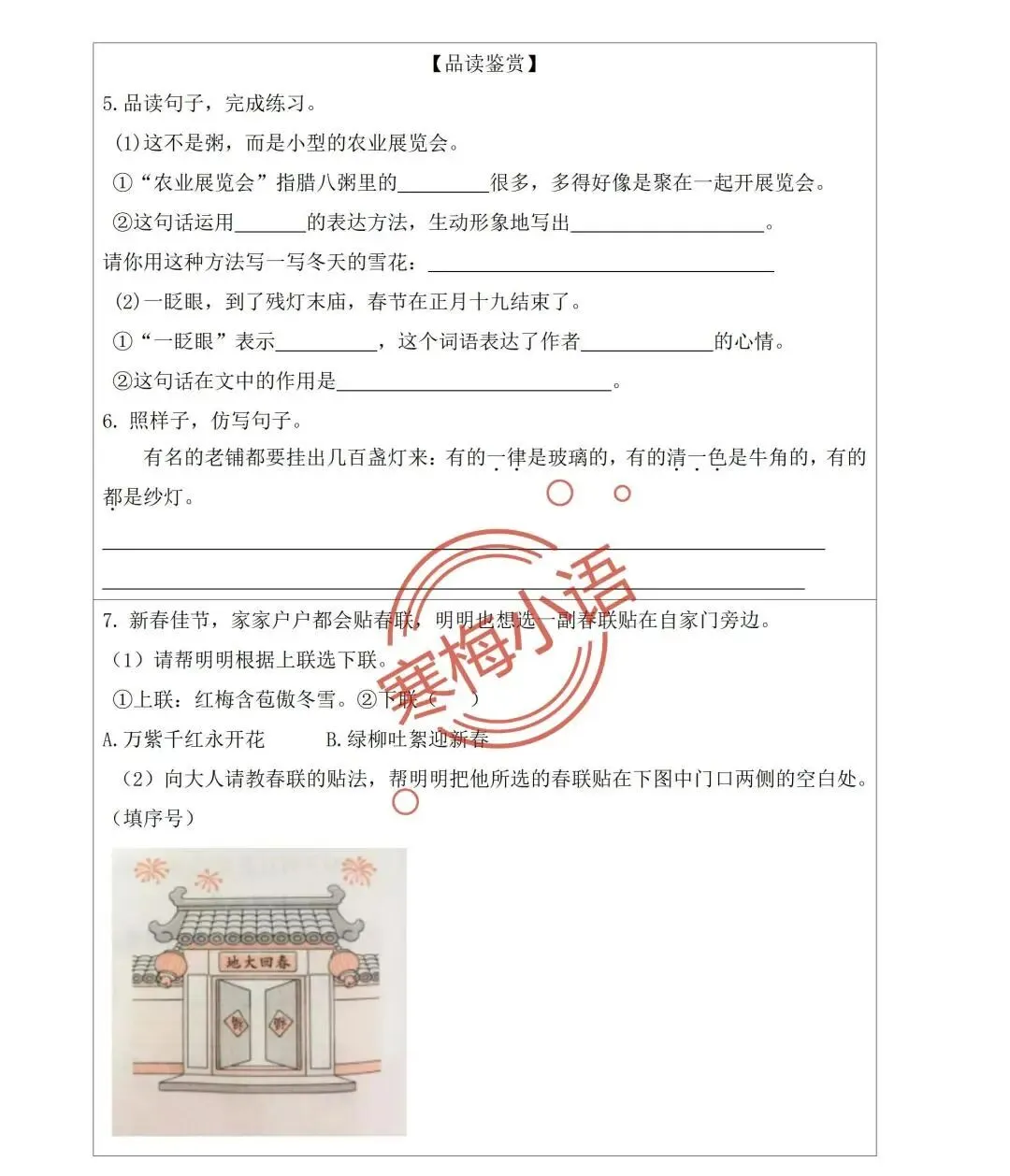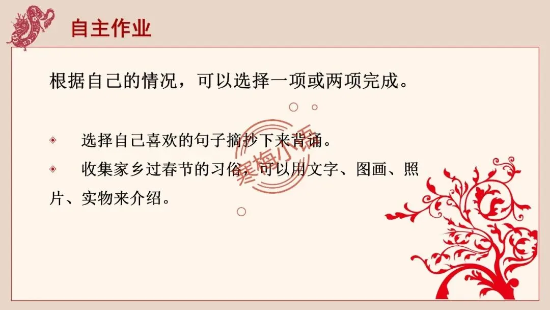 2.收集家乡过春节的习俗,可以用文字、图画、照片、实物来介绍。