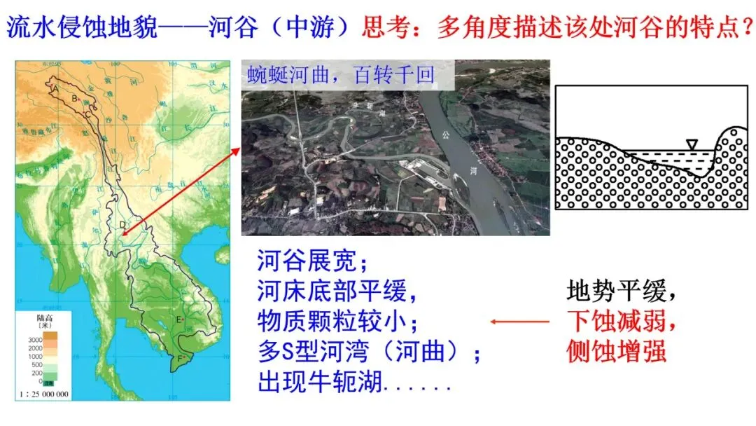 【详解】(1)气候因素:图 2 显示气温偏高且降水量增大。气温升高导致冰雪融水量增加,而降水增加直接使地表水量增多,河流获得更多水源形成较大径流量。这些地表水下渗补给地下水,使地下水量增加。地层与地形因素:巴音河流经的冲洪积平原沉积物颗粒较粗,水容易下渗并快速向下游流动,这为地下水在下游的聚集提供了基础。当水流到尕海镇所在的扇缘位置时,这里的沉积物颗粒变细,渗透性变差,起到了阻碍水流的作用,导致地下水在此聚集。此外,德南丘陵地势较高,也使得地下水在此处受到阻挡而水位上升,最终超出地表形成溢出。