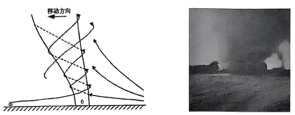 尘卷风是近地面大气中产生的直径小、高度低、持续时间短的旋风。1991年6月15日,皮纳图博火山发生爆炸式喷发,喷出大量火山灰和火山碎屑流,导致地球进入了两年的“火山冬天”,抑制了之后两年尘卷风的发生。下图示意尘卷风的结构及景观。据此完成下面小题。