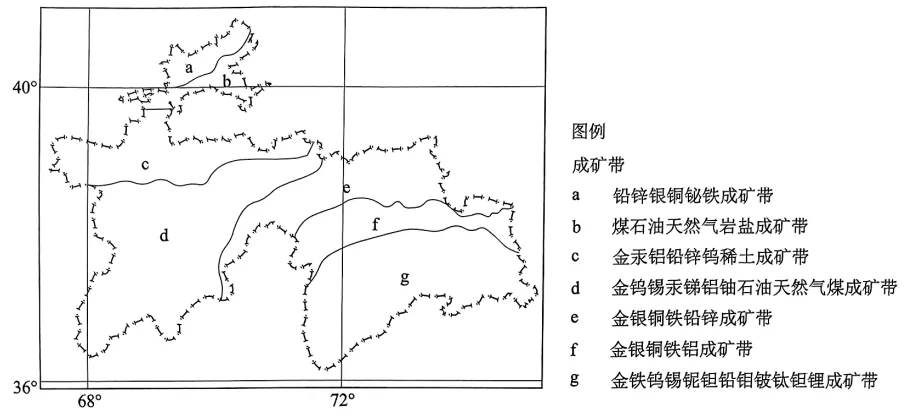 塔吉克斯坦是首批与我国签署共建“一带一路”政府之间合作文件的国家之一,也是中资企业开展矿业投资的热点地区,对保障我国能源资源安全意义重大。塔吉克斯坦境内多山,约占国土面积的93%,有“高山之国”的美誉。该国各类资源成矿地质背景优越,但开发程度不高。下图示意塔吉克斯坦成矿带的分布。